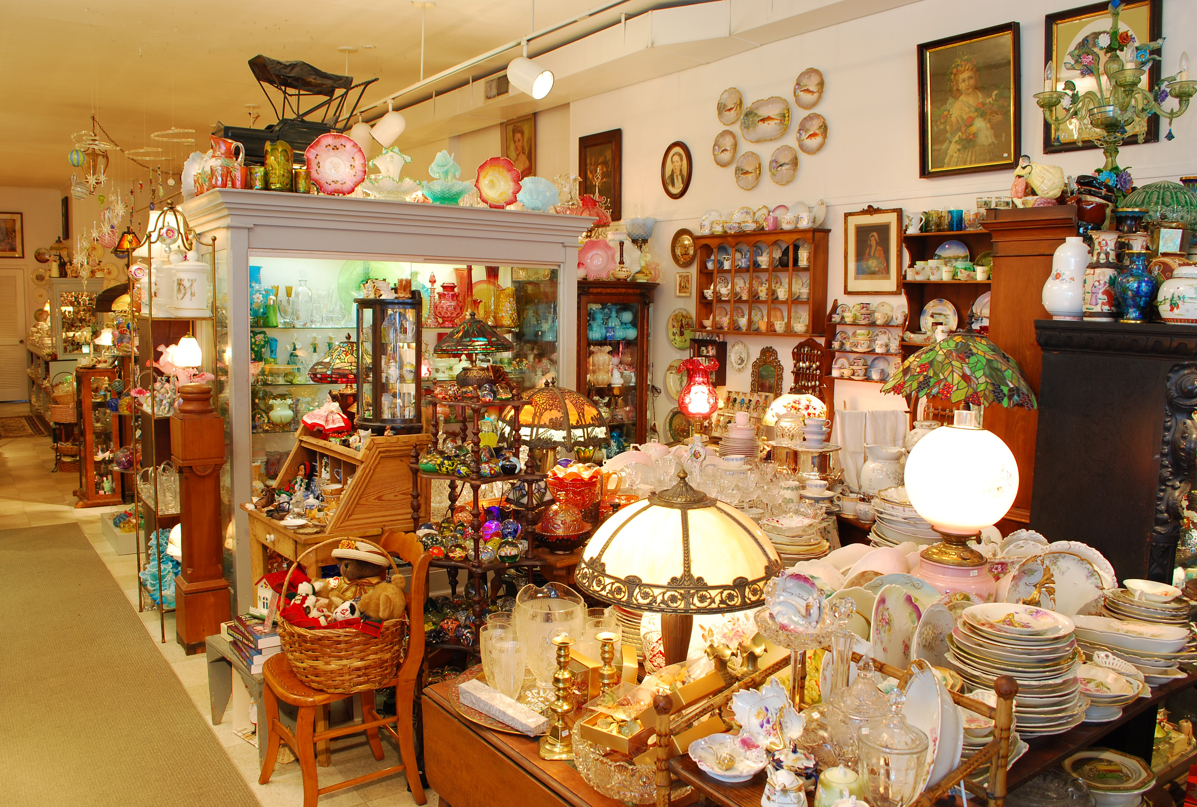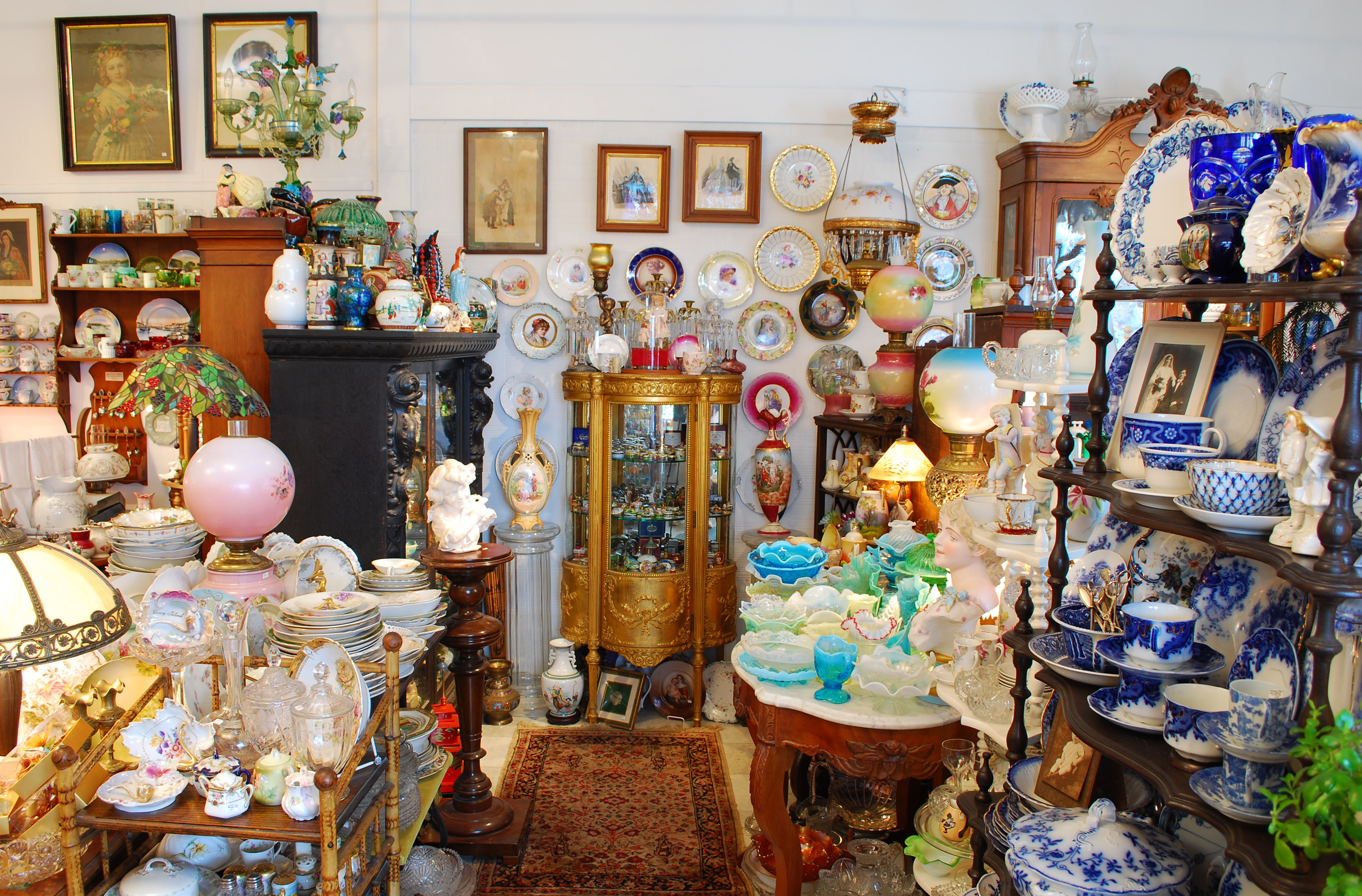 This aisle features late nineteenth and early twentieth century glass and china and Asian artifacts.
